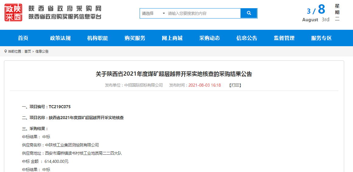測繪院成功中標陜西省2021年度煤礦超層越界開采實地核查項目 -